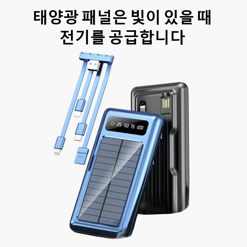 초박형 디자인, 휴대 간편, 고효율 태양광 충전, 다양한 기기 호환, 야외활동 필수 전원뱅크